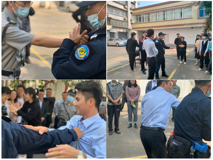 教官现场讲解反恐防暴基本技能和安全常识,就各类防暴器械使用方法和防暴技能进行了示范,并加强联社防暴应急处置方法、自身安全防护、施暴人员制服等方面提出针对性的意见和措施。全体参训人员熟悉各种动作要领之后,并和教官进行现场交流学习。