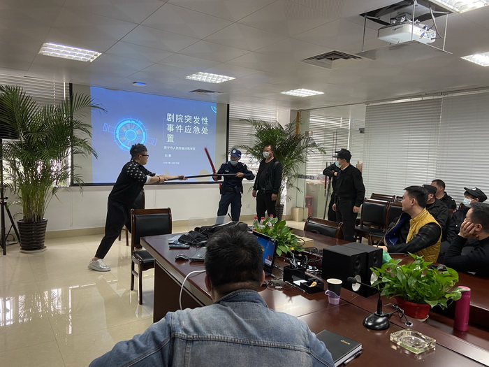 为切实提高广西戏剧院应对刀斧砍杀、涉爆袭击、纵火、踩踏等突发性事件应急处置能力,广西戏剧院受广西武盾保安服务有限公司委托邀请广西壮族自治区公安厅警务实战高级教官,南宁市人民警察训练学校专职刘教官,结合各戏剧院的实际情况,以“送教上门”的形式,就单人遭遇突发性事件的紧急避险方法,就地取材应对刀斧砍杀事件策略,有肢体接触解脱及带离技术,最小作战单元涉暴恐处置,遭遇纵火、踩踏等事件处置等内容与戏剧院员工深入交流,深入探讨。